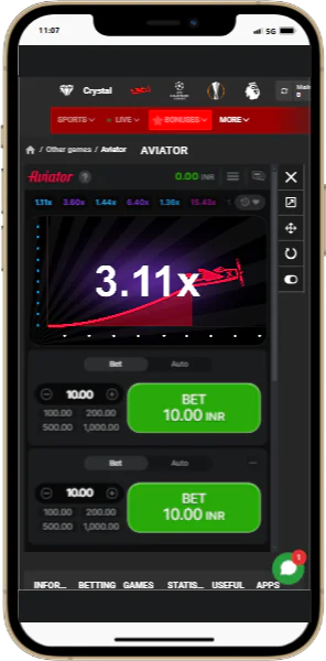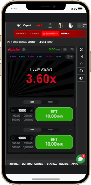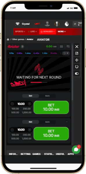 Screenshots of the 888starz Aviator App for Indian Gamblers