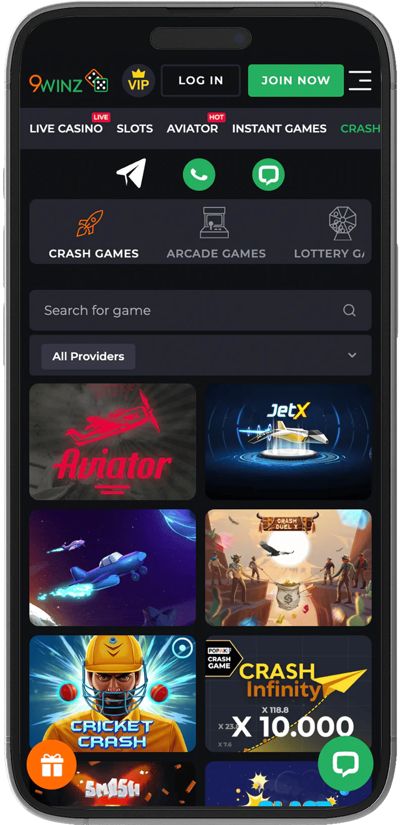 One of the features of the 9winz Aviator app is quick access to the crash game. You can now find it in a separate tab in the top navigation menu and quickly launch it on your device. To begin playing this crash game in the 9winz Aviator app, follow these effortless steps from our team: