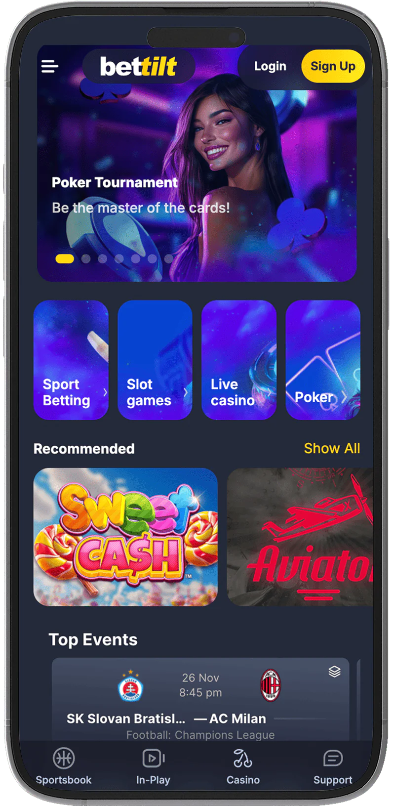 The Bettilt application almost entirely replicates the design of the original gaming site. You are able to see this by studying the screenshots of the app made by our author and presented below.