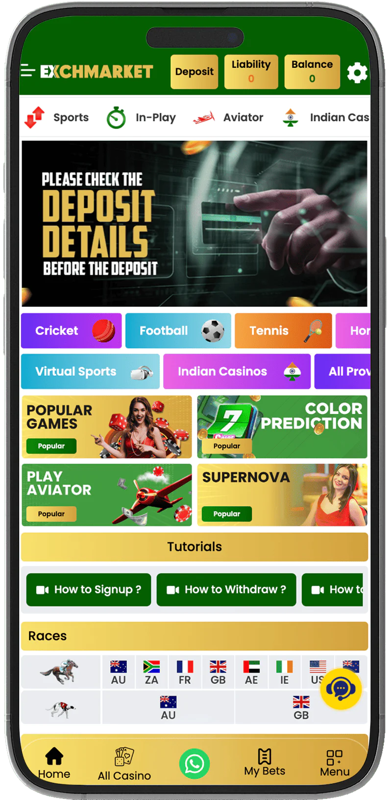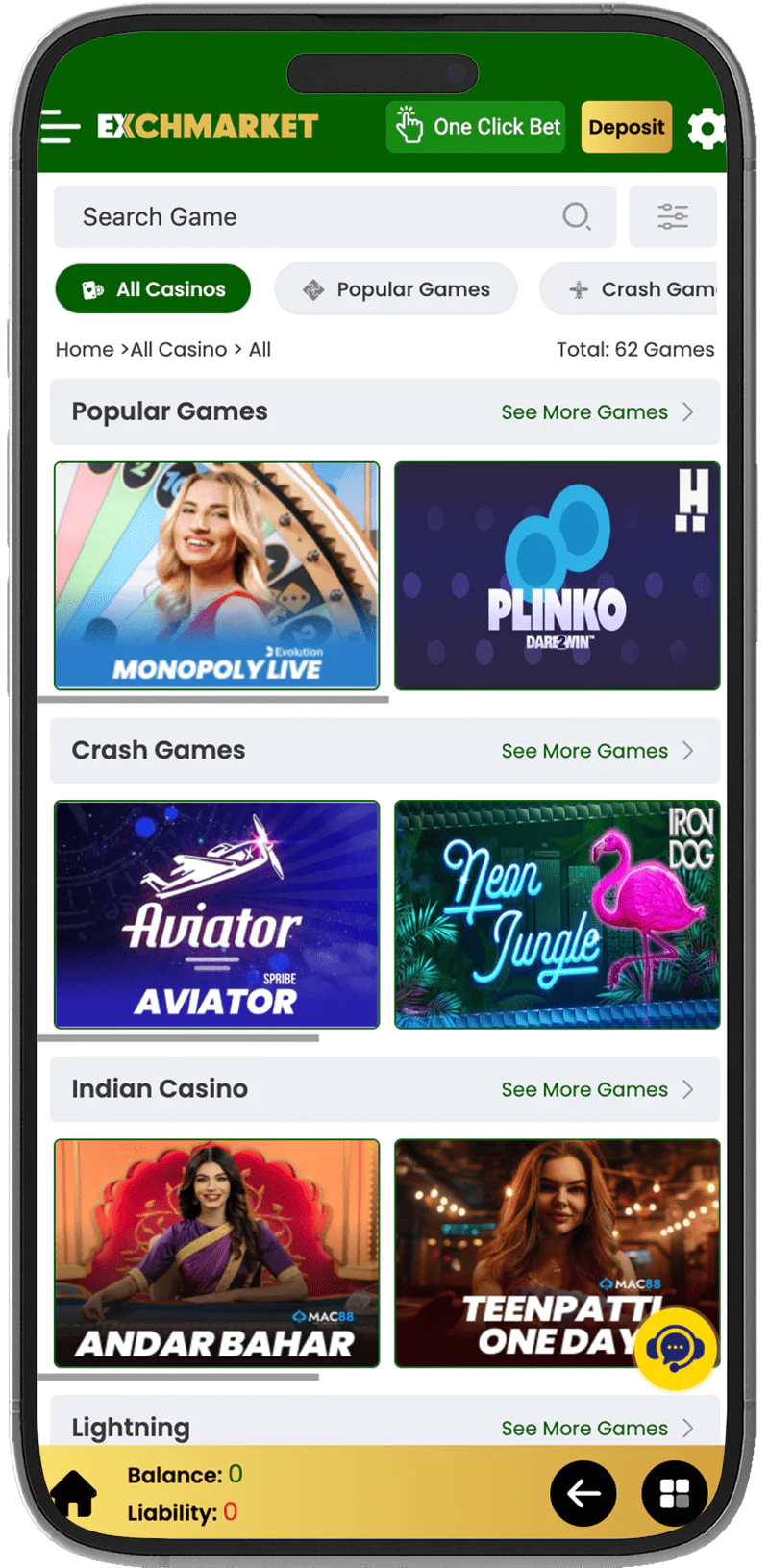 Those Indian gamblers who prefer to play Aviator on Android and iOS can download Exchmarket App. The game features quick rounds, an opportunity to win up to 1,000,000x, and a simple interface that makes gambling easier.